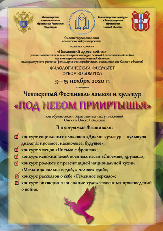 С 9 по 15 ноября 2020 года филологический факультет ОмГПУ проводит фестиваль языков и культур «Под небом Прииртышья».