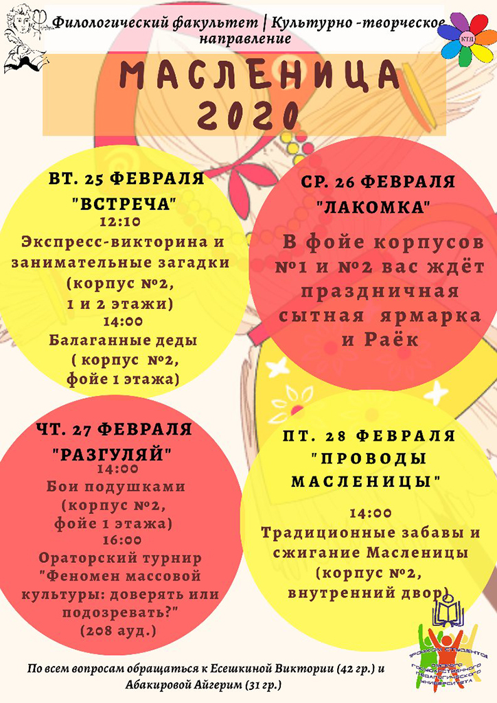 Филологический факультет по старой и доброй традиции проведет в этом году Масленичную неделю с 25 по 28 февраля.