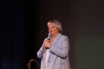 Участников Дня открытых дверей поприветствовала ректор ОмГПУ Наталья Станиславовна Макарова. Она рассказала, что в Омском педагогическом учатся около восьми тысяч студентов, реализуются программы среднего профессионального образования и почти 130 педагогических и непедагогических программ высшего образования.