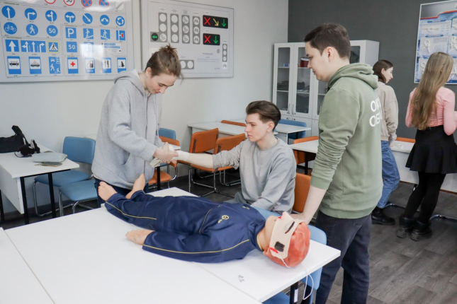 Биологи проводили мастер-класс по изготовлению микропрепаратов и экскурсию в зоологический музей, показывали развитие дрозофилы, а их коллеги – студенты профиля «Безопасность жизнедеятельности» – помогали школьникам освоить навыки первой помощи при травмах и ранениях, рассказали о способах сохранения жизни и здоровья в условиях автономного выживания в природной среде и при различных чрезвычайных ситуациях.