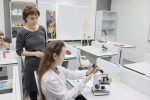 «Стол Пирогова помогает нам детально рассмотреть гистологический срез. В начале занятия каждый студент рассматривает препарат под микроскопом. Затем мы все вместе изучаем гистологический срез за столом Пирогова. Это позволяет студентам более детально увидеть вблизи все гистологические особенности отдельных органов», — отметила Татьяна Колпакова.
