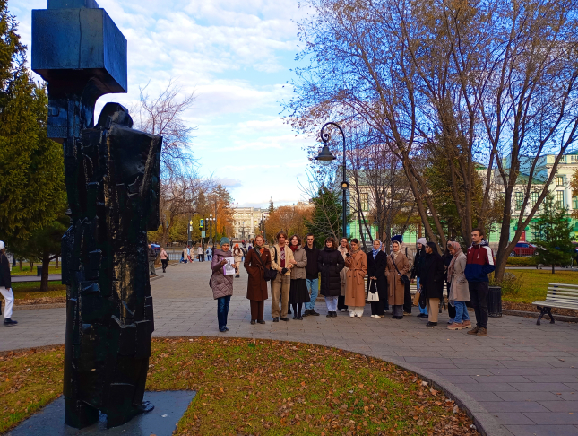 В канун дня рождения известного русского писателя Ф.М. Достоевского доцент кафедры иностранных языков Ю.Г. Косякова провела для студентов двух факультетов пешеходную экскурсию «По следам Ф.М. Достоевского в Омске».