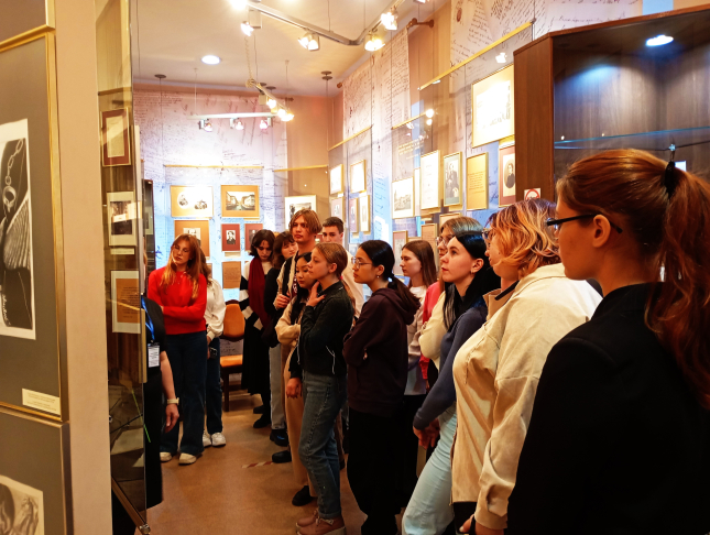 Во второй части экскурсии студенты посетили Литературный музей имени Ф.М. Достоевского, где прослушали интересный рассказ экскурсовода о жизни и творчестве писателя, увидели множество фотографий и предметов острожного и городского быта того времени. Кроме того, студенты получили уникальную возможность спуститься в тюремный каземат, созданный в цокольном помещении музея. Там создана интерактивная экспозиция «Казарма каторжного острога», воссоздающая атмосферу и быт подземного каземата, каким описал его Достоевский в «Записках из Мёртвого дома».