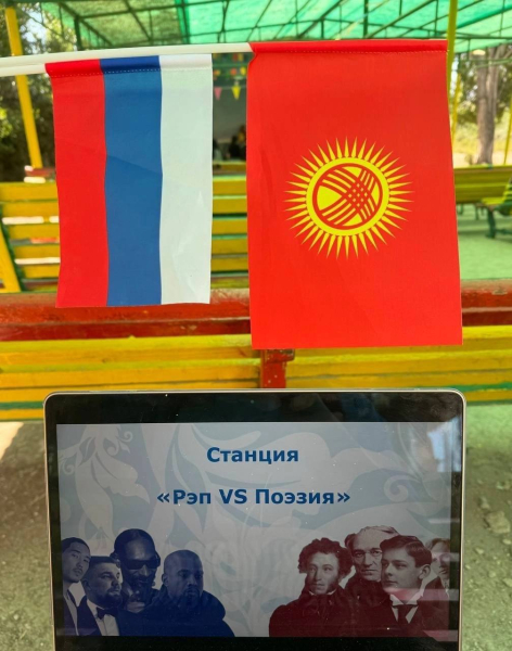 За время пребывания в Кыргызстане волонтеры успели провести занятия для двух смен лагеря. Ярким событием для детей стал квест «Русские забавы»: все девять отрядов проходили различные станции и выполняли задания. Ребята сравнивали рэп и поэзию, отгадывали русские песни, исполненные на разных языках, озвучивали мемы, собирали русские пословицы и поговорки. В квест были включены задания, связанные с творчеством Александра Сергеевича Пушкина. В юбилейный год хотелось показать как традиционный слог поэта, так и его современный облик.