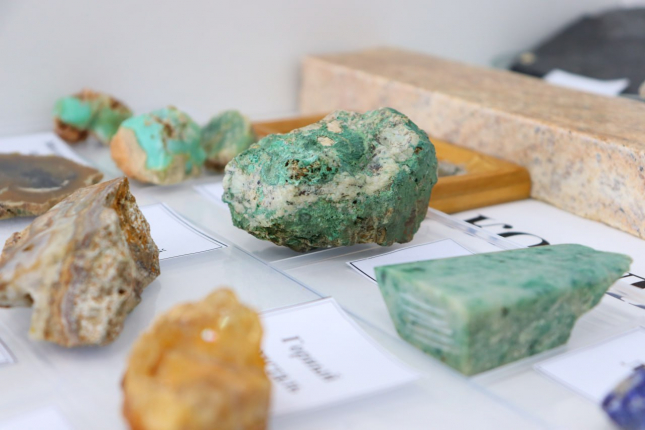Приблизительно четыре тысячи. Мы не можем пока назвать точную цифру, потому что еще не прошла инвентаризация, в запасниках у нас очень много чего лежит. Но приблизительно в каталогах около четырех тысяч. Здесь, думаю, более 100 видов минералов и большое количество горных пород. Горные породы — это несколько минералов в единой массе.