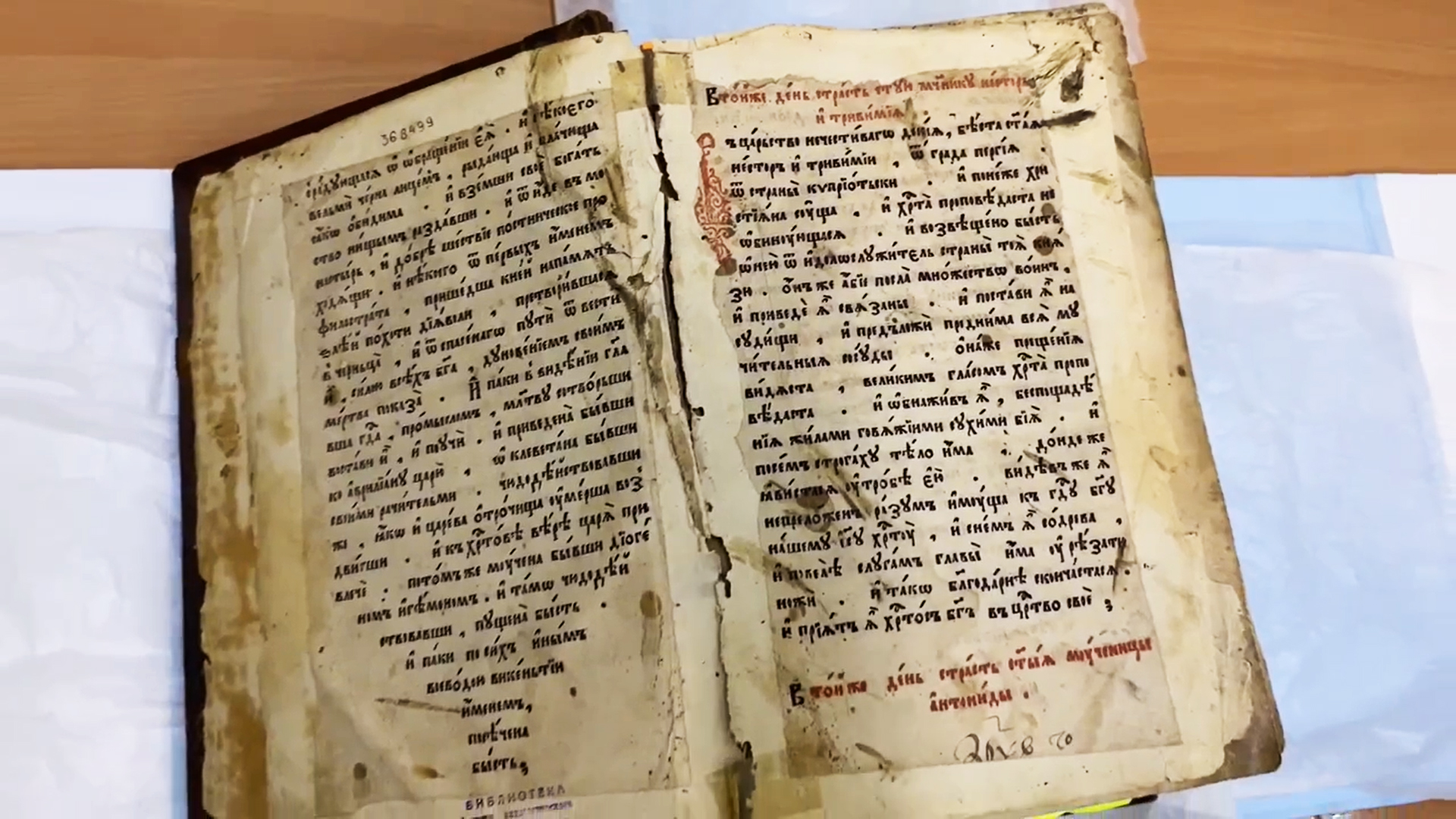 Первым героем выпуска стал древнерусский житийный сборник – «Пролог. Жизнеописание всех святых». В этом году книге исполнилось 380 лет. Она была издана в 1643-1644 годах. Даже заядлых книголюбов могут поразить размеры книжного памятника – 954 страницы! Толщина книги больше 15 см! Пролог имеет календарный характер: жития святых расположены в нем в соответствии с днями их церковной памяти. На каждый день года приходится несколько житий и памятей святых.
