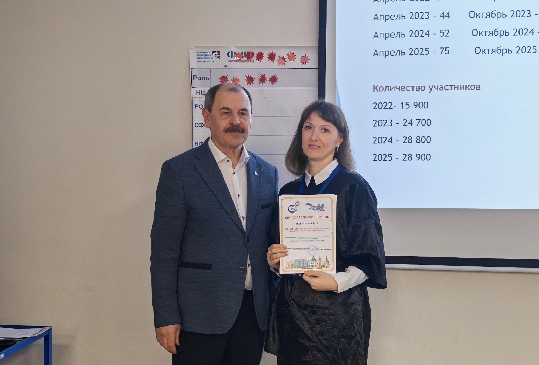 За активное участие в проведении акции и вклад в трудовое воспитание подрастающего поколения первый заместитель председателя ОРО «СоюзМаш» России Владимир Нефедович Дорохин вручил ОмГПУ благодарственное письмо.