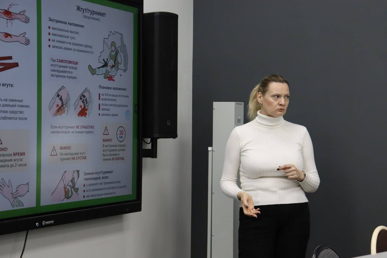 Один из дней обучения прошел на учебных полигонах Общероссийской общественно-государственной организации «Добровольное общество содействия армии, авиации и флоту России». Практические занятия вели опытные инструкторы с боевым опытом патриотического центра «Характер», центра специальной военной подготовки «Сибирский полк», учебного центра Росгвардии, Союза ветеранов СВО, ВСПК «Тайфун» и «Юнармии».