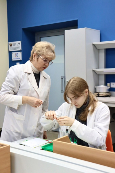 22 февраля прошло занятие «Сложные вопросы ОГЭ по химии» под руководством заведующей кафедрой химии и методики преподавания химии Ольги Ивановны Курдумановой. Участники рассмотрели самые трудные задания экзаменационной программы, а также провели серию экспериментов, чтобы наглядно изучить свойства различных веществ. Ученицу 9-го класса Милену Даниелян особенно впечатлила возможность самостоятельного проведения опытов: «Это позволило мне лучше понять теоретические аспекты и увидеть взаимодействие веществ в реальности. Химия меня привлекает, и я уверена, что она пригодится мне в дальнейшем обучении и при поступлении в вуз».