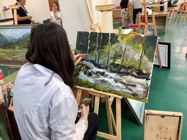 Во второй день художники-преподаватели и студенты написали два этюда с выездом в горы по свободно выбранным объектам природы в направлении реализма. В этюдах был сделан упор на поиск композиционного решения, цвета и оттенка.