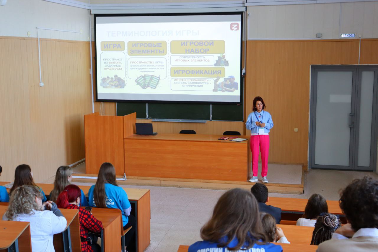 Участники слушали лекцию «Игротехника, игрофикация и игроформация — от слов к делу» от преподавателя Омского педагогического, лектора Российского общества «Знание» Олеси Александровны Гешко. На завершающей семинар проектной сессии педагоги определили структуру термина «играть» и презентовали пространство проекта.