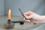 На лабораторной части занятия студенты исследовали образцы пластмасс, наблюдая их поведение при нагревании. Они отмечали ключевые характеристики, такие как горение вне пламени, цвет огня, запах, наличие копоти и потрескивание. Это помогло студентам решить экспериментальную задачу по распознаванию различных типов пластмасс. Например, полиэтилен горит синим пламенем без копоти, а полистирол выделяет характерный запах стирола. В рамках экспериментальной части студенты изучали разнообразные образцы: одноразовую посуду (полипропилен и полистирол), самоклеющуюся пленку, виниловые обои, изделия из кожзаменителя (ПВХ), упаковки и бутылки от напитков и косметических средств (ПЭТ), корпуса ручек, пуговицы (полистирол), крышки для стеклянных банок (капрон), крышки для бутылок (полиэтилен) и другие предметы.