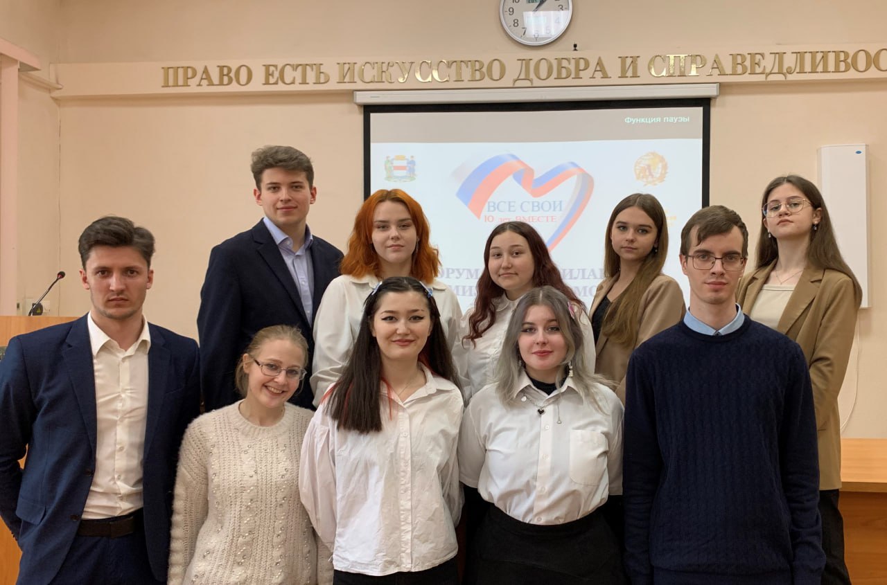 Форум был посвящен вопросам гражданско-патриотического воспитания молодежи и формированию общественного мнения, направленного на создание атмосферы нетерпимости к экстремистским проявлениям среди молодежи. Студенты университетского колледжа Ивашкина София, Струценко Арина, факультета начального, дошкольного и специального образования Малетина Анна, Дубровина Алина, Прокопенко Анна, Исмаилова Гулнур, факультета истории, философии и права Братухина Анна, Матвеев Александр, Зубенко Артем, Савкин Андрей вместе со специалистом отдела молодежной политики Викторией Латуховой приняли активное участие в программе форума: прослушали выступления на пленарном заседании, посетили тематические интерактивные площадки.