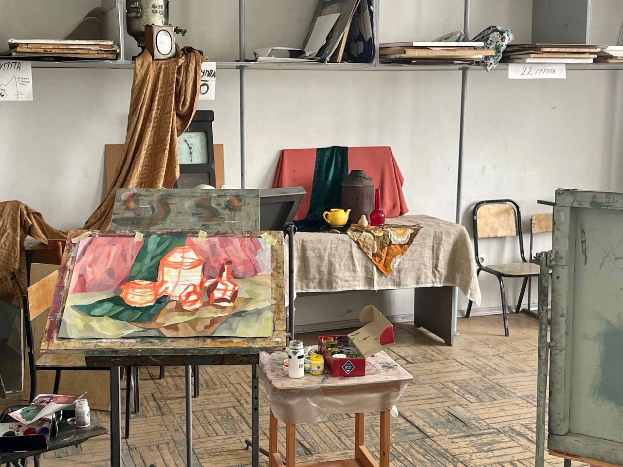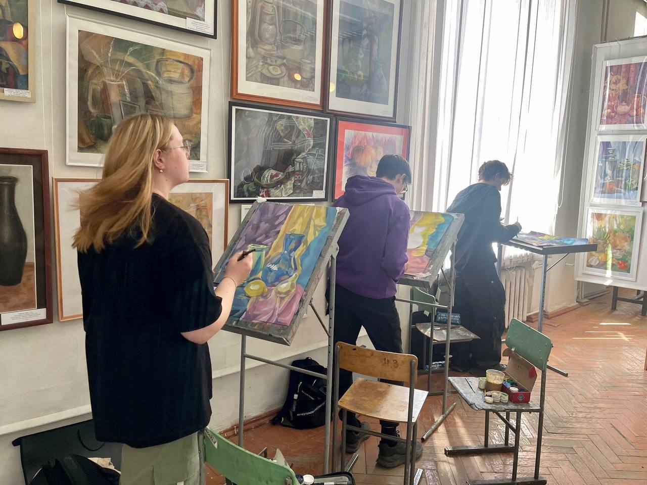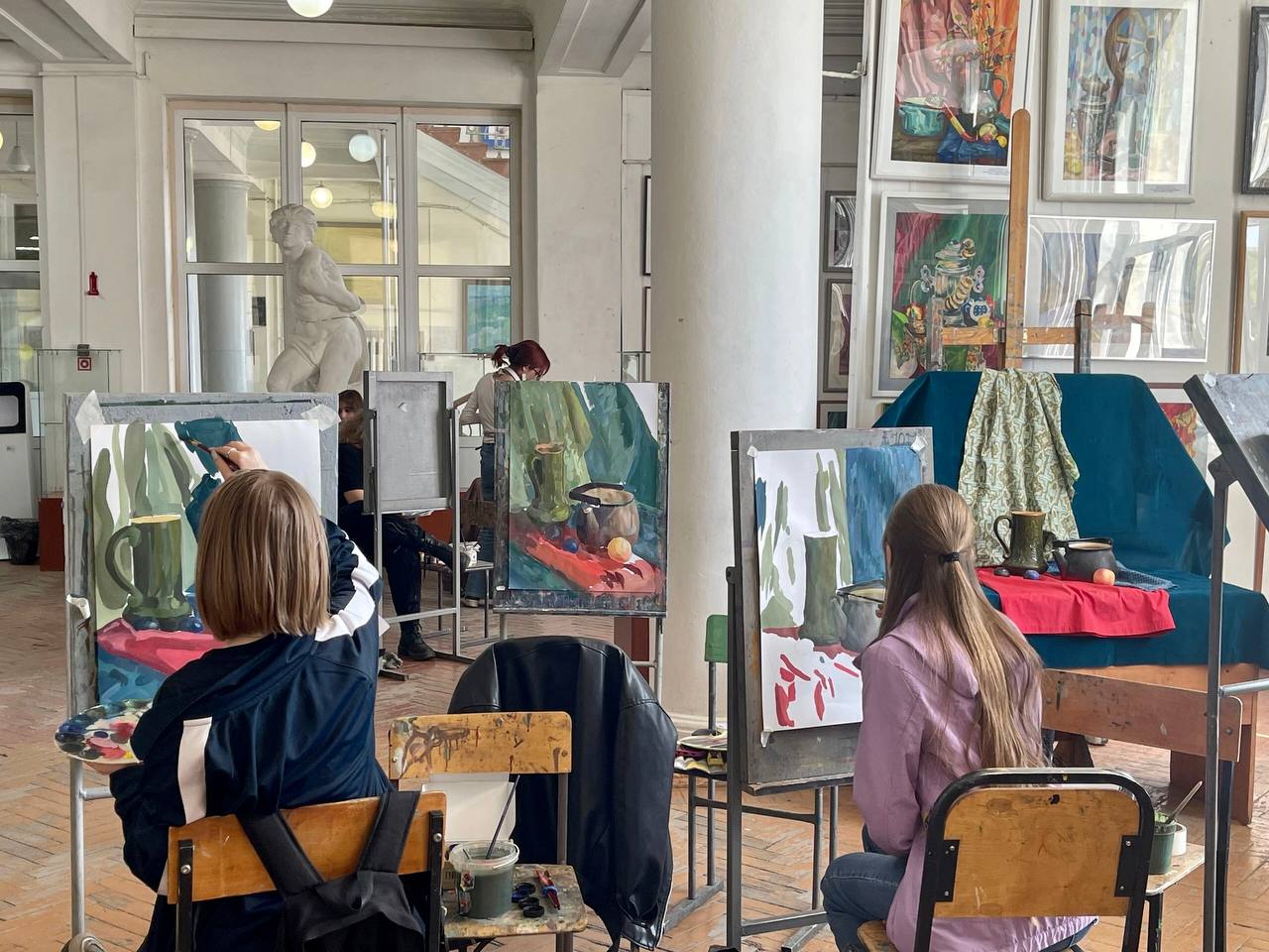 Тема олимпиады этого года – «Тематический живописный натюрморт». Участникам было необходимо выполнить натюрморт на формате А2, составленный из бытовых предметов на фоне драпировок живописным материалом на выбор: акварель, гуашь.