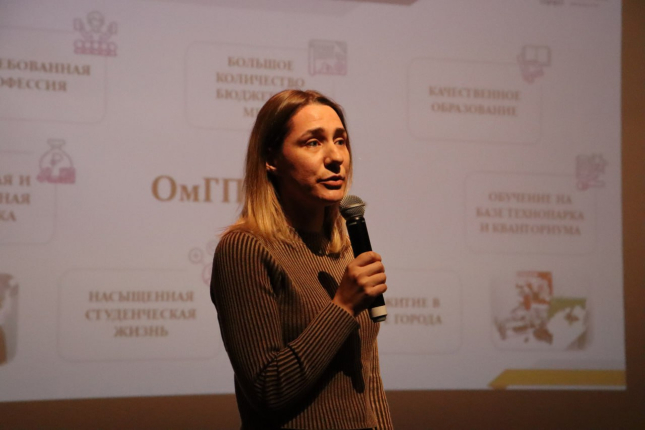 Студенты ОмГПУ рассказали школьникам о всех факультетах, интересных занятиях, активной внеучебной жизни в вузе и поделились историями, почему они выбрали ОмГПУ. Также у будущих абитуриентов была возможность получить консультацию у ответственного секретаря приемной комиссии ОмГПУ Татьяны Владимировны Воропаевой и узнать об особенностях поступления в педагогический университет.