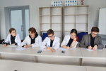 Вместе с завкафедрой биологии и биологического образования ОмГПУ Олегом Одинцевым, ассистентом кафедры Анастасией Копченковой и инженером-лаборантом Викторией Мальцевой студенты учились пользоваться новым оборудованием: генетическим набором и набором «Отпечаток ДНК».
