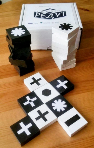 Разработка новой настолки «Редут» длилась около года. Главная цель игры – собрать четыре фигуры своего цвета в квадрат, то есть редут, и не дать это сделать противнику. В игре девять фигур, у трех из них – по два экземпляра, как в шахматах: две ладьи, два слона, два коня. У каждого игрока по 12 фигур. На поле располагаются по два «пушкаря», «пехотинца», «казака», а также «гвардеец-пушкарь», «гвардеец-пехотинец», «гвардеец-казак», «редут», «ров» и «болото». Для каждой фигуры – свои правила хода.